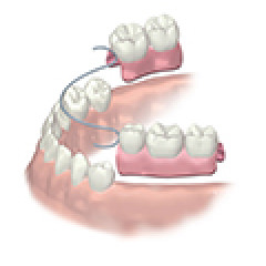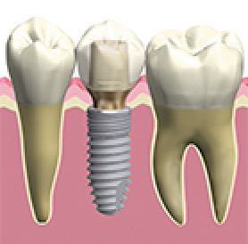 ![]() 歯の抜けた所へインプラントを埋入。周りの歯は削りません。 |
