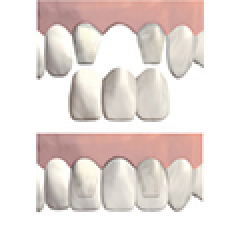歯が一本抜けた場合、両隣りの歯を削ってブリッジにします。 |