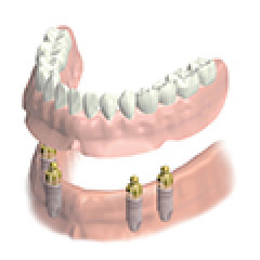 ![]() 数本のインプラントで入れ歯をしっかり固定。 |